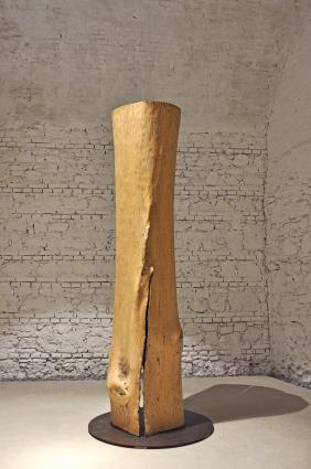 Eichenstamm, ausgehöhlt mit Aufbruch durch Frostriss